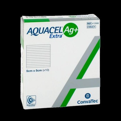 AQUACEL® Ag+ EXTRA™ es un apósito, estéril, potenciado de Hydrofiber® con plata y fibra reforzante. Es un apósito con propiedades antimicrobianas y antibiofilm que contiene un 1,2% de plata, ácido etilenediaminetetra-acético (EDTA) y cloruro de benzetonio (BeCl) en el interior de sus fribras de celulosa. La plata iónica del apósito elimina microorganismos patógenos, tanto en forma planctónica como de biofilms, previene la formación / reformación de las biopelículas e incrementa la eficacia de la plata respecto a los microorganismos. Son apósitos capaces de gestionar grandes cantidades de exudado que podemos introducir en cavidades o sobre lesiones superficiales.