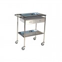 El Carro de Curas de Acero Inoxidable con 2 Cajones, Cubo de Restos y Portabombonas es un equipo médico diseñado para facilitar el transporte y almacenamiento de material médico en hospitales, clínicas y consultorios. Este carro está fabricado en acero inoxidable de alta calidad, lo que garantiza su durabilidad y resistencia a la corrosión.